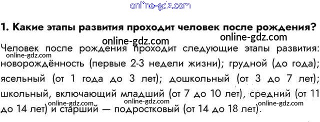 Готовые домашние задания по Биологии за 8 класс Учебник Пасечник, Каменский Линия жизни 2016 - Вопросы §57. Рост и развитие ребёнка после рождения 1