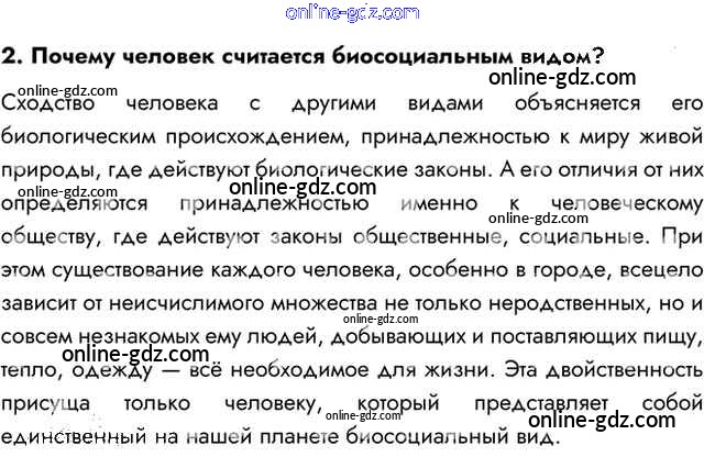 Готовые домашние задания по Биологии за 8 класс Учебник Пасечник, Каменский Линия жизни 2016 - Вопросы §58. Социальная и природная среда человека 2