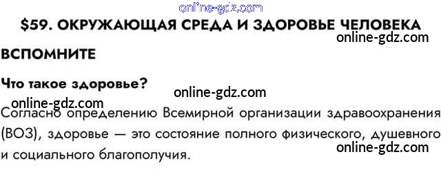 Готовые домашние задания по Биологии за 8 класс Учебник Пасечник, Каменский Линия жизни 2016 - Вспомните §59. Окружающая среда и здоровье человека 1