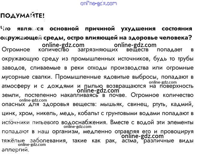 Готовые домашние задания по Биологии за 8 класс Учебник Пасечник, Каменский Линия жизни 2016 - Подумайте §59. Окружающая среда и здоровье человека 1