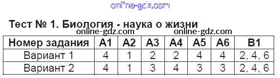 Готовые домашние задания по Биологии за 9 класс Контрольно-измерительные материалы (КИМ) Богданов 2017 - Тесты Тест №1. Биология - наука о жизни