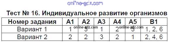 Готовые домашние задания по Биологии за 9 класс Контрольно-измерительные материалы (КИМ) Богданов 2017 - Тесты Тест №16. Индивидуальное развитие организмов