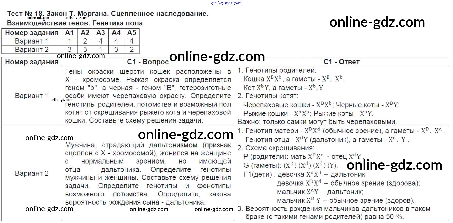 Готовые домашние задания по Биологии за 9 класс Контрольно-измерительные материалы (КИМ) Богданов 2017 - Тесты Тест №18. Закон Т. Моргана. Сцепленное наследование. Взаимодействие генов. Генетика пола