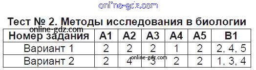 Готовые домашние задания по Биологии за 9 класс Контрольно-измерительные материалы (КИМ) Богданов 2017 - Тесты Тест №2. Методы исследования в биологии