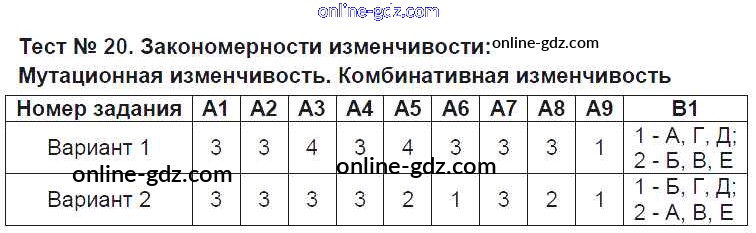 Готовые домашние задания по Биологии за 9 класс Контрольно-измерительные материалы (КИМ) Богданов 2017 - Тесты Тест №20. Закономерности изменчивости - Мутационная изменчивость. Комбинативная изменчивость