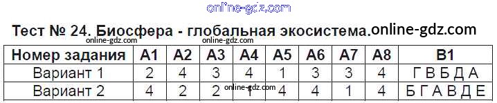 Готовые домашние задания по Биологии за 9 класс Контрольно-измерительные материалы (КИМ) Богданов 2017 - Тесты Тест №24. Биосфера - глобальная экосистема