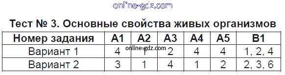 Готовые домашние задания по Биологии за 9 класс Контрольно-измерительные материалы (КИМ) Богданов 2017 - Тесты Тест №3. Основные свойства живых организмов