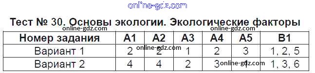 Готовые домашние задания по Биологии за 9 класс Контрольно-измерительные материалы (КИМ) Богданов 2017 - Тесты Тест №30. Основы экологии. Экологические факторы