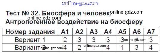 Готовые домашние задания по Биологии за 9 класс Контрольно-измерительные материалы (КИМ) Богданов 2017 - Тесты Тест №32. Биосфера и человек. Антропогенное воздействие на биосферу