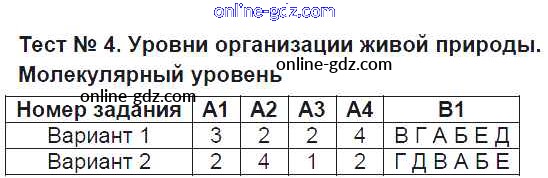 Готовые домашние задания по Биологии за 9 класс Контрольно-измерительные материалы (КИМ) Богданов 2017 - Тесты Тест №4. Уровни организации живой природы