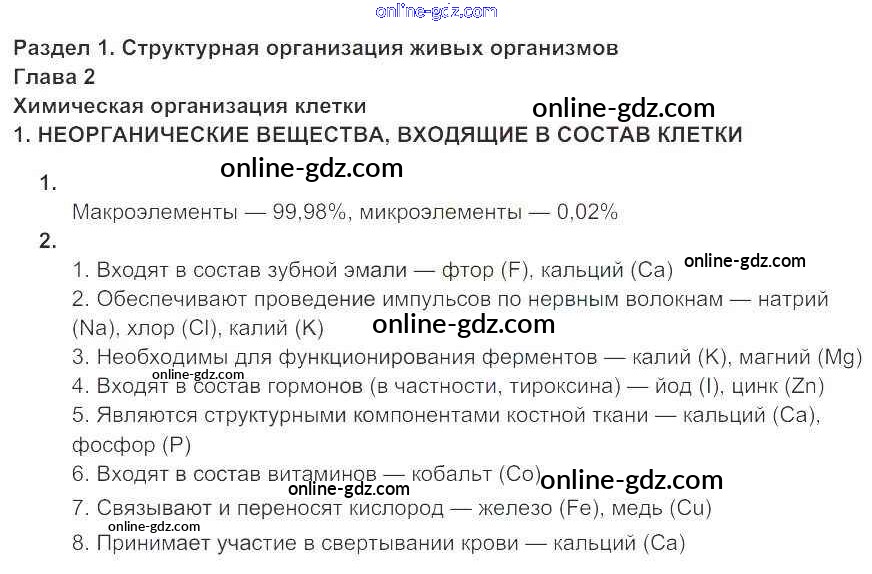 Готовые домашние задания по Биологии за 9 класс Рабочая тетрадь Цибулевский, Захаров Вертикаль 2015 - Глава 2. Химическая организация клетки стр.11