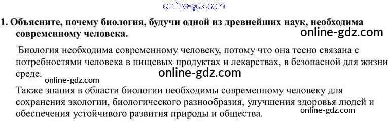 Готовые домашние задания по Биологии за 9 класс Учебник Пономарева, Корнилова 2019 - §1. Биология — наука о живом мире 1