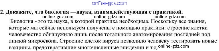 Готовые домашние задания по Биологии за 9 класс Учебник Пономарева, Корнилова 2019 - §1. Биология — наука о живом мире 2