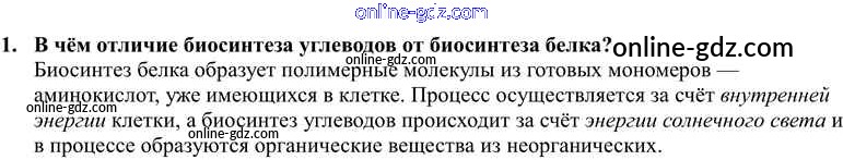Готовые домашние задания по Биологии за 9 класс Учебник Пономарева, Корнилова 2019 - §11. Биосинтез белка в клетке 1