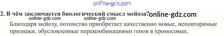 Готовые домашние задания по Биологии за 9 класс Учебник Пономарева, Корнилова 2019 - §24. Образование половых клеток. Мейоз 2