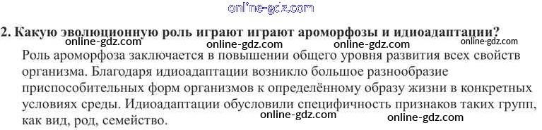 Готовые домашние задания по Биологии за 9 класс Учебник Пономарева, Корнилова 2019 - §40. Основные направления эволюции 2