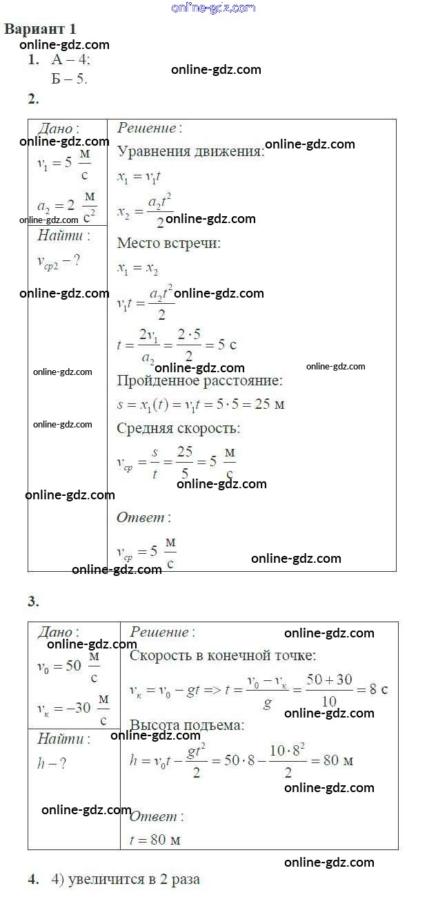 Готовые домашние задания по Физике за 10 класс Самостоятельные и контрольные работы Ерюткин, Ерюткина Базовый и углубленный уровень 2018 - КР Кинематика 1