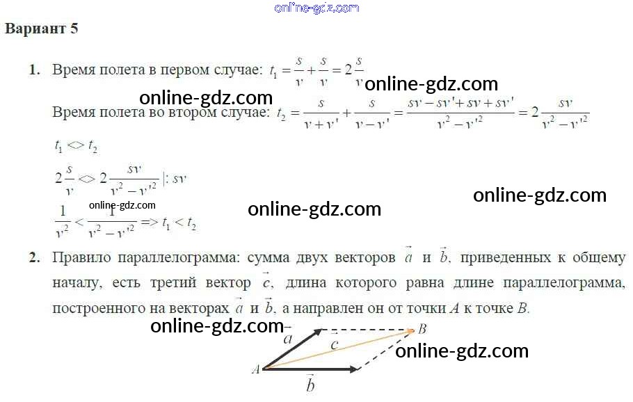 Готовые домашние задания по Физике за 10 класс Самостоятельные и контрольные работы Ерюткин, Ерюткина Базовый и углубленный уровень 2018 - СР №3 Кинематика 5