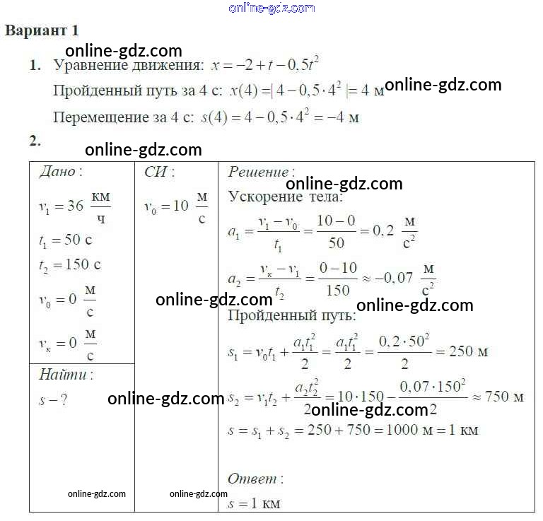 Готовые домашние задания по Физике за 10 класс Самостоятельные и контрольные работы Ерюткин, Ерюткина Базовый и углубленный уровень 2018 - СР №5 Кинематика 1