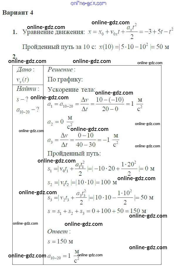 Готовые домашние задания по Физике за 10 класс Самостоятельные и контрольные работы Ерюткин, Ерюткина Базовый и углубленный уровень 2018 - СР №5 Кинематика 4