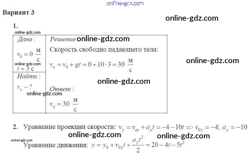 Готовые домашние задания по Физике за 10 класс Самостоятельные и контрольные работы Ерюткин, Ерюткина Базовый и углубленный уровень 2018 - СР №6 Кинематика 3