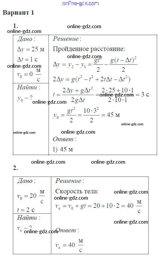 Готовые домашние задания по Физике за 10 класс Самостоятельные и контрольные работы Ерюткин, Ерюткина Базовый и углубленный уровень 2018 - СР №7 Кинематика 1