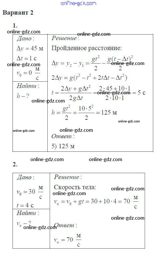 Готовые домашние задания по Физике за 10 класс Самостоятельные и контрольные работы Ерюткин, Ерюткина Базовый и углубленный уровень 2018 - СР №7 Кинематика 2