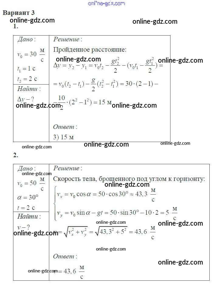 Готовые домашние задания по Физике за 10 класс Самостоятельные и контрольные работы Ерюткин, Ерюткина Базовый и углубленный уровень 2018 - СР №7 Кинематика 3
