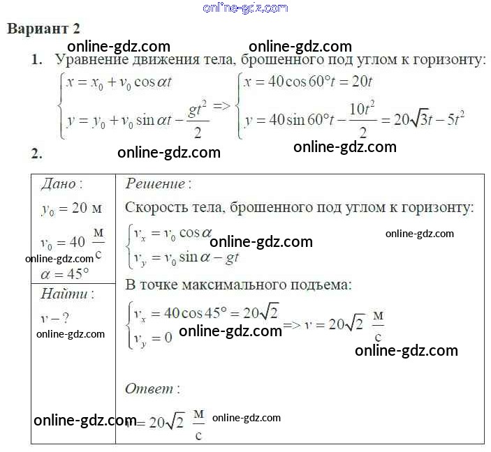 Готовые домашние задания по Физике за 10 класс Самостоятельные и контрольные работы Ерюткин, Ерюткина Базовый и углубленный уровень 2018 - СР №8 Кинематика 2