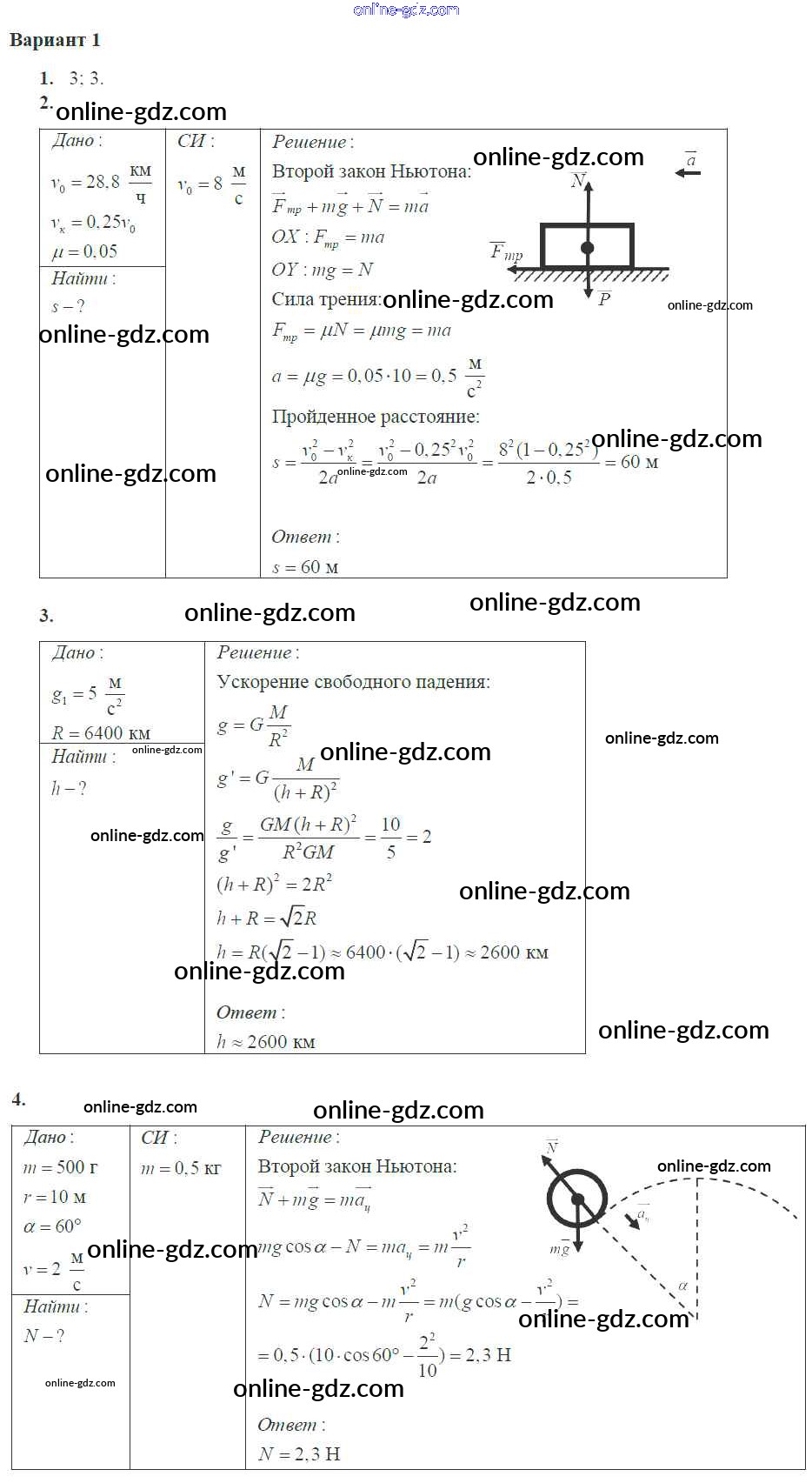 Готовые домашние задания по Физике за 10 класс Самостоятельные и контрольные работы Ерюткин, Ерюткина Базовый и углубленный уровень 2018 - КР Динамика 1