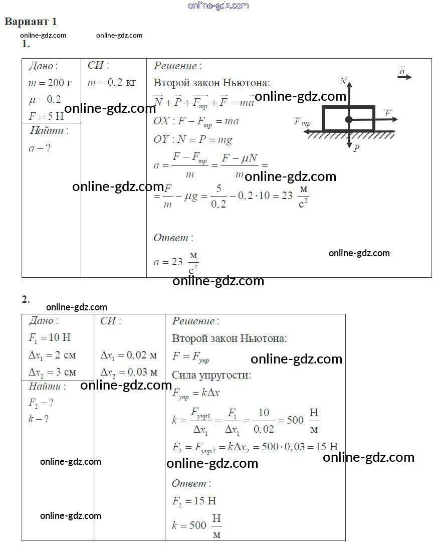 Готовые домашние задания по Физике за 10 класс Самостоятельные и контрольные работы Ерюткин, Ерюткина Базовый и углубленный уровень 2018 - СР №10 Динамика 1