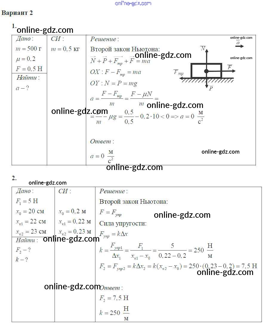 Готовые домашние задания по Физике за 10 класс Самостоятельные и контрольные работы Ерюткин, Ерюткина Базовый и углубленный уровень 2018 - СР №10 Динамика 2