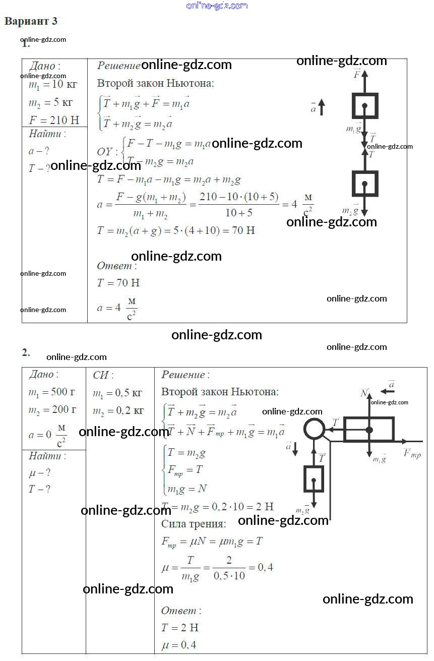 Готовые домашние задания по Физике за 10 класс Самостоятельные и контрольные работы Ерюткин, Ерюткина Базовый и углубленный уровень 2018 - СР №11 Динамика 3