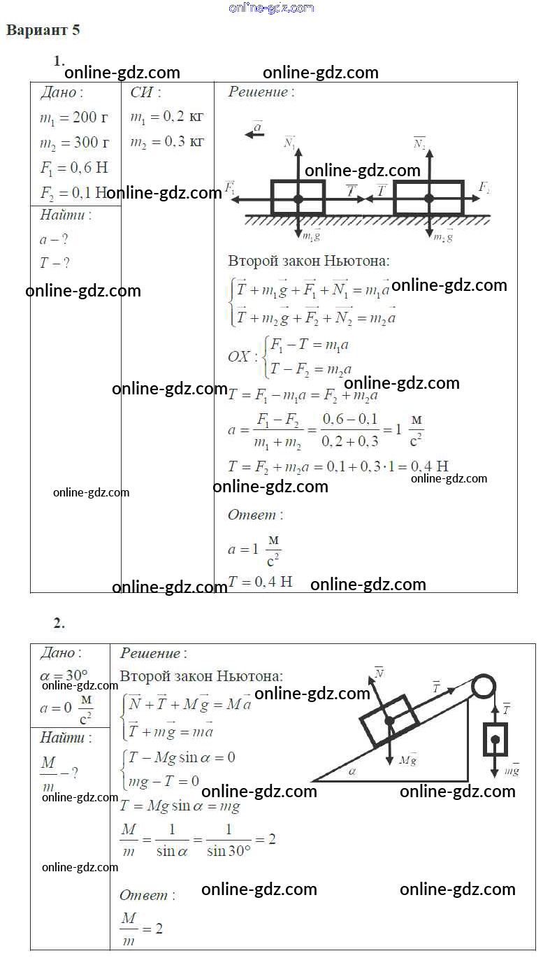 Готовые домашние задания по Физике за 10 класс Самостоятельные и контрольные работы Ерюткин, Ерюткина Базовый и углубленный уровень 2018 - СР №11 Динамика 5
