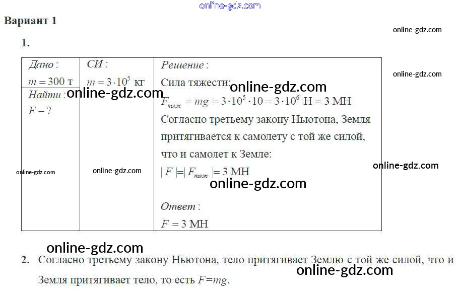 Готовые домашние задания по Физике за 10 класс Самостоятельные и контрольные работы Ерюткин, Ерюткина Базовый и углубленный уровень 2018 - СР №3 Динамика 1