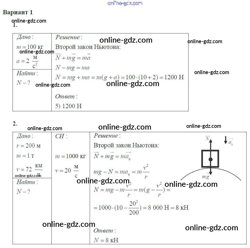 Готовые домашние задания по Физике за 10 класс Самостоятельные и контрольные работы Ерюткин, Ерюткина Базовый и углубленный уровень 2018 - СР №6 Динамика 1