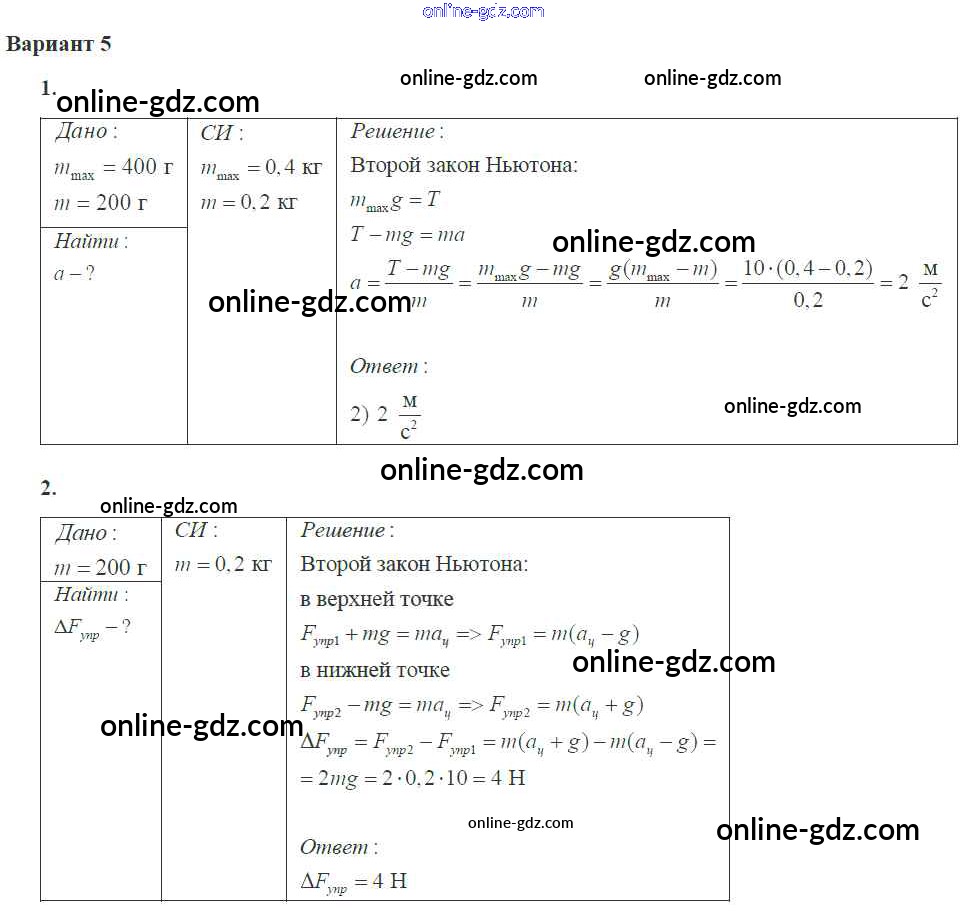 Готовые домашние задания по Физике за 10 класс Самостоятельные и контрольные работы Ерюткин, Ерюткина Базовый и углубленный уровень 2018 - СР №6 Динамика 5