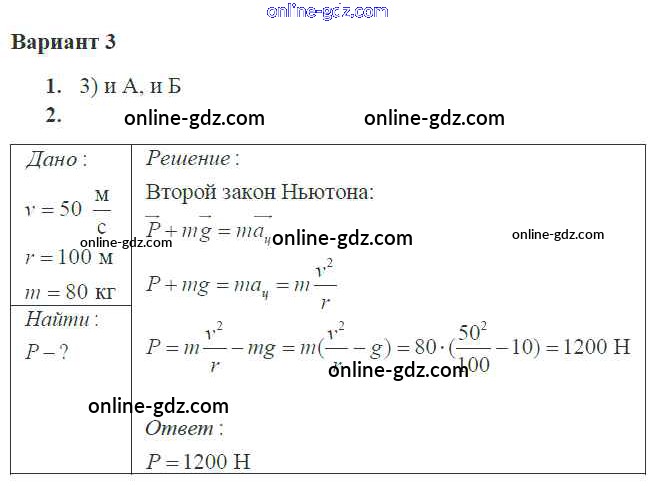 Готовые домашние задания по Физике за 10 класс Самостоятельные и контрольные работы Ерюткин, Ерюткина Базовый и углубленный уровень 2018 - СР №7 Динамика 3
