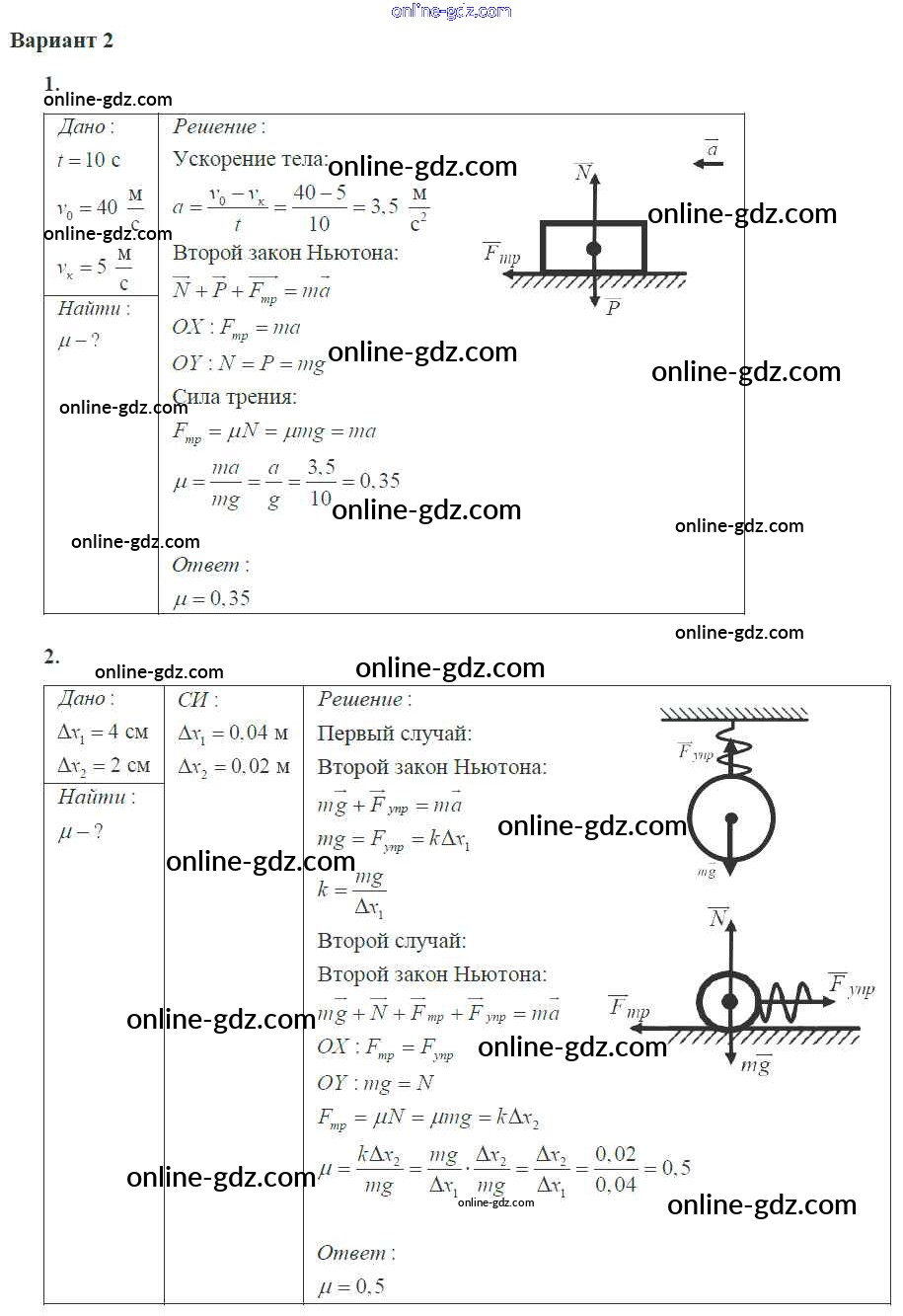 Готовые домашние задания по Физике за 10 класс Самостоятельные и контрольные работы Ерюткин, Ерюткина Базовый и углубленный уровень 2018 - СР №8 Динамика 2