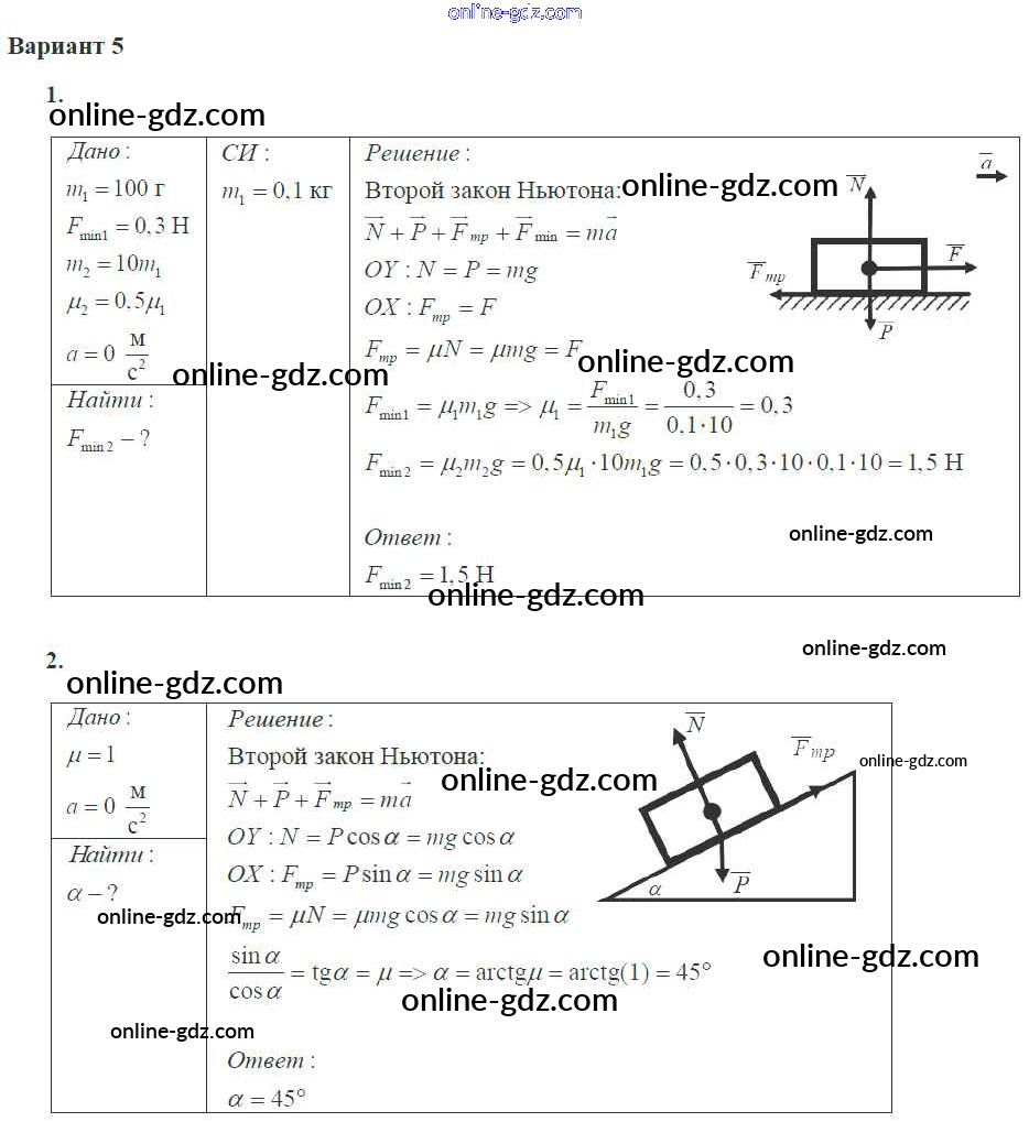 Готовые домашние задания по Физике за 10 класс Самостоятельные и контрольные работы Ерюткин, Ерюткина Базовый и углубленный уровень 2018 - СР №8 Динамика 5