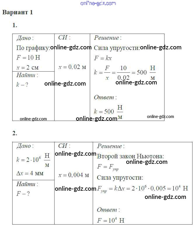 Готовые домашние задания по Физике за 10 класс Самостоятельные и контрольные работы Ерюткин, Ерюткина Базовый и углубленный уровень 2018 - СР №9 Динамика 1