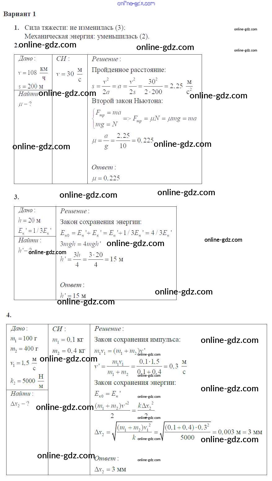 Готовые домашние задания по Физике за 10 класс Самостоятельные и контрольные работы Ерюткин, Ерюткина Базовый и углубленный уровень 2018 - КР Законы сохранения в механике 1