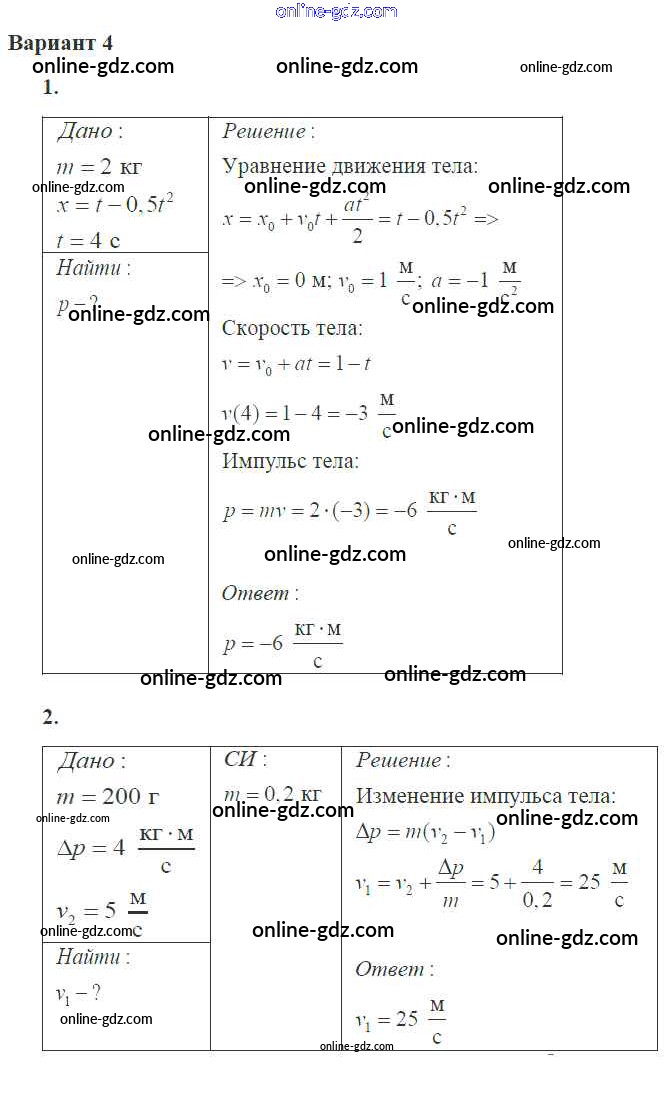 Готовые домашние задания по Физике за 10 класс Самостоятельные и контрольные работы Ерюткин, Ерюткина Базовый и углубленный уровень 2018 - СР №1 Законы сохранения в механике 4