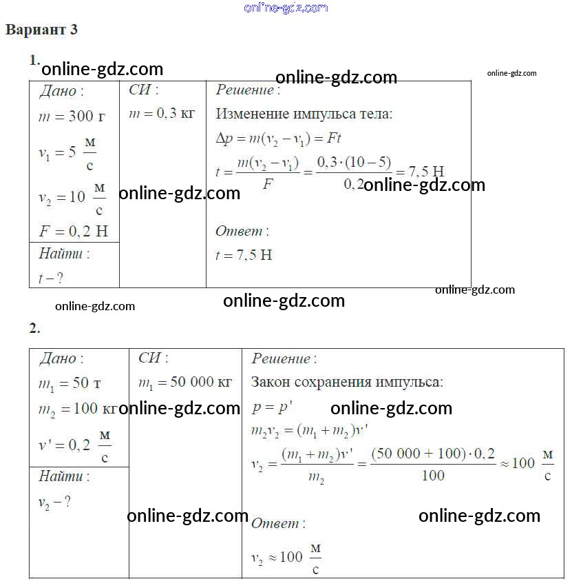 Готовые домашние задания по Физике за 10 класс Самостоятельные и контрольные работы Ерюткин, Ерюткина Базовый и углубленный уровень 2018 - СР №2 Законы сохранения в механике 3