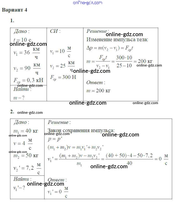 Готовые домашние задания по Физике за 10 класс Самостоятельные и контрольные работы Ерюткин, Ерюткина Базовый и углубленный уровень 2018 - СР №2 Законы сохранения в механике 4