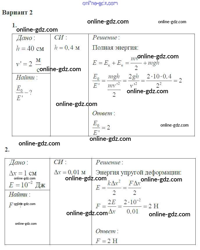 Готовые домашние задания по Физике за 10 класс Самостоятельные и контрольные работы Ерюткин, Ерюткина Базовый и углубленный уровень 2018 - СР №3 Законы сохранения в механике 2