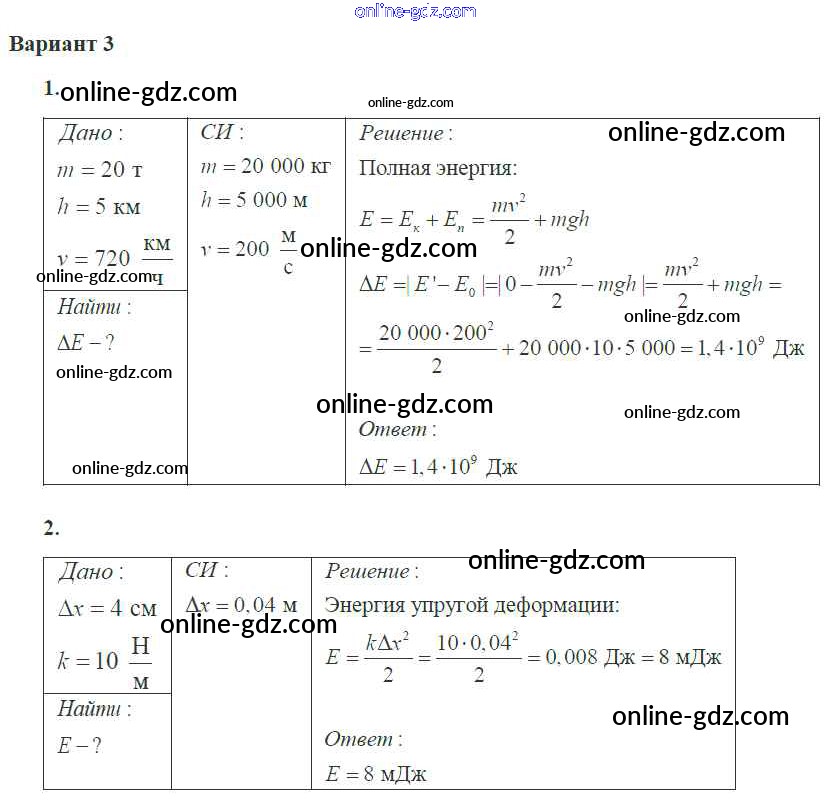 Готовые домашние задания по Физике за 10 класс Самостоятельные и контрольные работы Ерюткин, Ерюткина Базовый и углубленный уровень 2018 - СР №3 Законы сохранения в механике 3