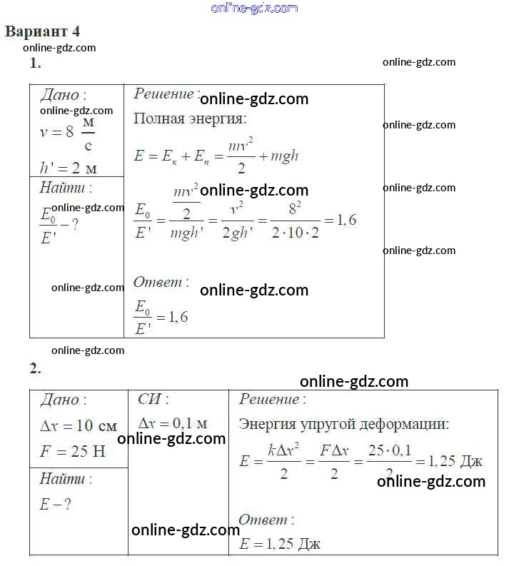 Готовые домашние задания по Физике за 10 класс Самостоятельные и контрольные работы Ерюткин, Ерюткина Базовый и углубленный уровень 2018 - СР №3 Законы сохранения в механике 4