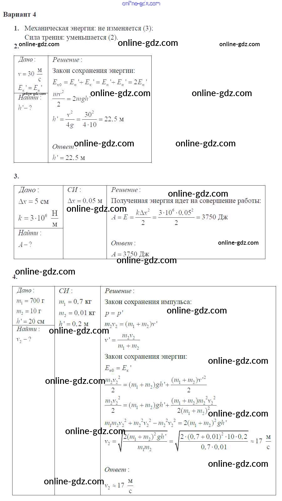 Готовые домашние задания по Физике за 10 класс Самостоятельные и контрольные работы Ерюткин, Ерюткина Базовый и углубленный уровень 2018 - КР Законы сохранения в механике 4