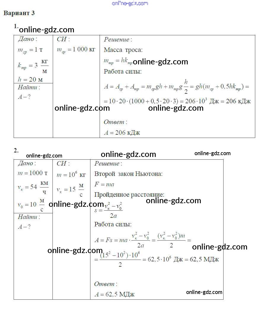 Готовые домашние задания по Физике за 10 класс Самостоятельные и контрольные работы Ерюткин, Ерюткина Базовый и углубленный уровень 2018 - СР №4 Законы сохранения в механике 3